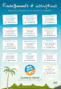 Les adhérents PEEP bénéficient d’une réduction de 10% sur les tarifs des formations proposées par l’AFOCAL, notamment au BAFA.